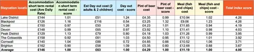 The figures show that across the eight staycation destinations analysed, the cost of short term rental accommodation such as an AirBnB comes in at an average £146 per day.