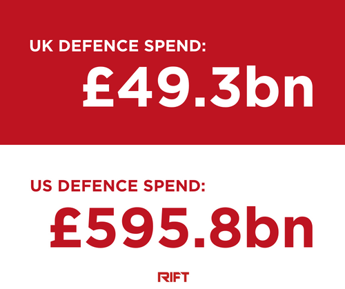 When breaking this international spend comparison down by sector, the UK ranks highest where government spending on defence is concerned. In fact, the UK’s total estimated spend of £49.3bn per year is second only to the United States, where an eye watering £595.8bn is spent on defence each year.