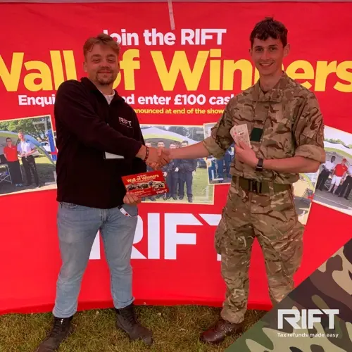 “It was a great pleasure to support the air show, and in particular to engage with so many RAF apprentices, whose courses mean they often qualify for tax refunds. 2022 is clearly a year of anniversaries and celebrations, which also applies to RIFT who are celebrating the milestone of £100 million reclaimed for members of the Armed Forces in overpaid tax. RIFT are marking the occasion with a 100/100 campaign this year, in which we award a £100 to one member of the Armed Forces with whom we engage at each military event. Grace Morris was very excited to have her name drawn at random at the end of the day, as was John Munt, the winner of the RIFT £50 top referrer of the day prize. Being able to advise so many members of the RAF on how they might be able to make a claim, as well as taking in the air show, made this a day to remember!”