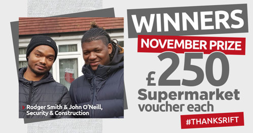 "Winning £1,000 each before Christmas is amazing, we couldn’t believe it. Thank you RIFT!"
